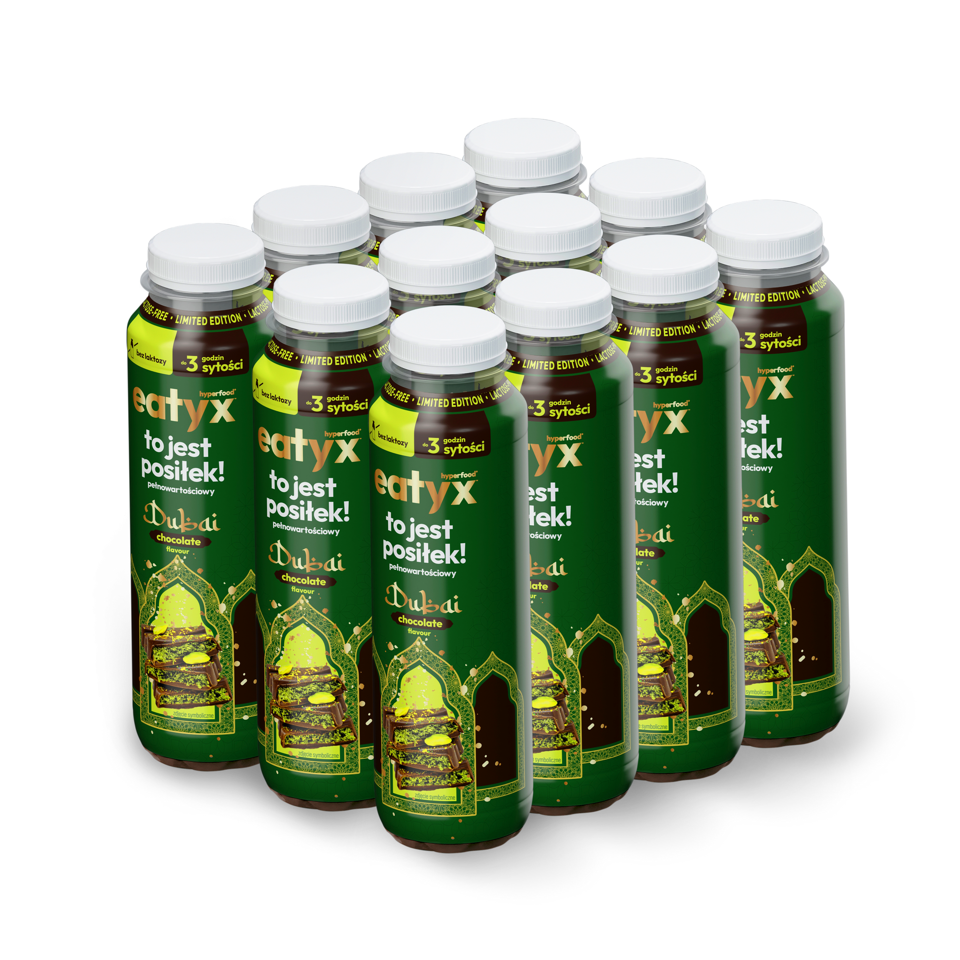 To kompletny, gotowy do spożycia posiłek, który łączy aksamitny smak luksusowej czekolady z delikatną nutą pistacji. Dzięki zbilansowanej formule opartej na białkach mleka bez laktozy, 21 witaminach i minerałach oraz wysokiej zawartości białka, eatyx Dubajska Czekolada dostarcza Twojemu ciału wszystkiego, czego potrzebuje – z klasą i smakiem.