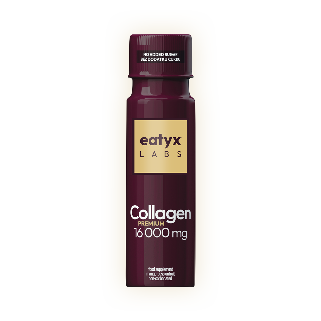 Poznaj shot kolagenowy eatyx LABS Collagen Premium 16 000 mg. Każda 80-mililitrowa buteleczka zawiera aż 16 000 mg wysoko przyswajalnego hydrolizatu kolagenu wołowego – w idealnej, codziennej dawce. To nie tylko suplement. To Twój codzienny rytuał pielęgnacyjny.