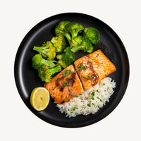 *Składniki: łosoś pieczony (80 g) + ryż gotowany (50 g) + brokuł gotowany (30 g) + oliwa (10 g).